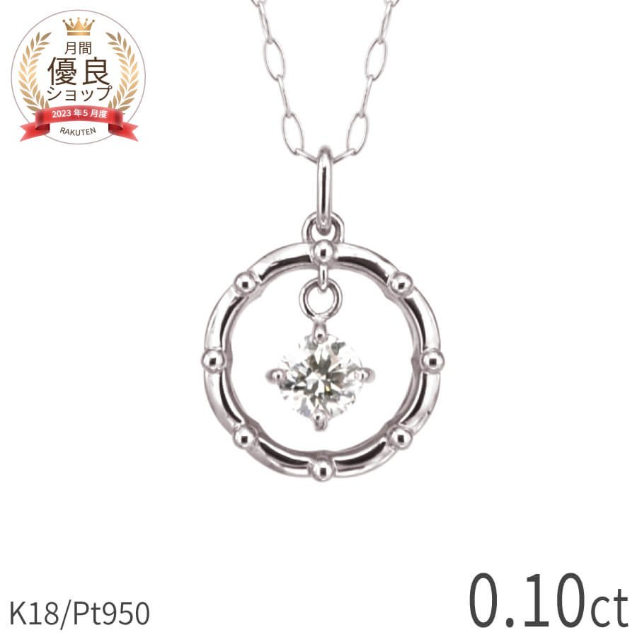 ダイヤモンドネックレス Pt950 18金 ダイヤ ダイア ペンダント 0.1カラット レディース サークル ネックレス チェーン 天然ダイヤモンド 誕生石 4月 ダイヤモンドネックレス 一粒...