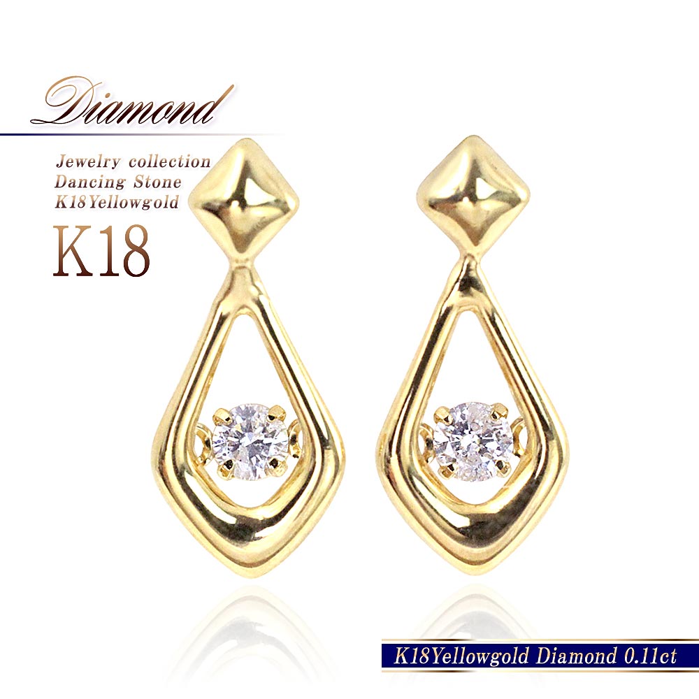 ダイヤモンド ピアス 18金 ゆれる レディース k18 プレゼント 揺れる ダイアモンド アクセサリー 18k ジュエリー ダイヤ ひし形 金色 18