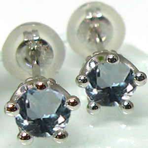 アクアマリンサンタマリア・ピアス・一粒・宇宙・プラチナ・ピアス