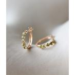 上品なオリーブカラーが美しい、ペリドットのピアス。キュービックの煌めきとイエローゴールドのフレームがよりペリドットのカラーを引き立てます。耳もとになじむ程よいサイズ感は、デイリー使いにおすすめ。地金素...