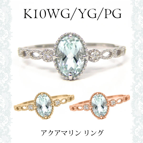 アクアマリン リング ミルグレイン K10YG/PG/WG