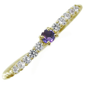 2月誕生石アメジストとダイヤモンドを贅沢に使用した10金製シンプルリング(指輪)です。シンプルなダイヤモンドリングですので、ピンキーリングやファランジリングにもお勧めです。※【10金カラー3色の中から...