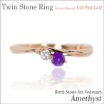 アメジスト リング K10 ピンクゴールド レディース メンズ 指輪 PG ツインストーン 2月 誕生石 刻印 可能 ダイヤモンド 可能 名入れ リング シンプル 男性 女性