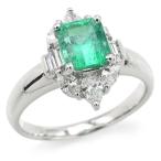 1.43ct天然エメラルドリング 16号 Pt900 0.73ct天然ダイヤモンド エメラルドカット 四角形 グリーン 指輪 プラチナ 地金7.5g 中古 送料無料