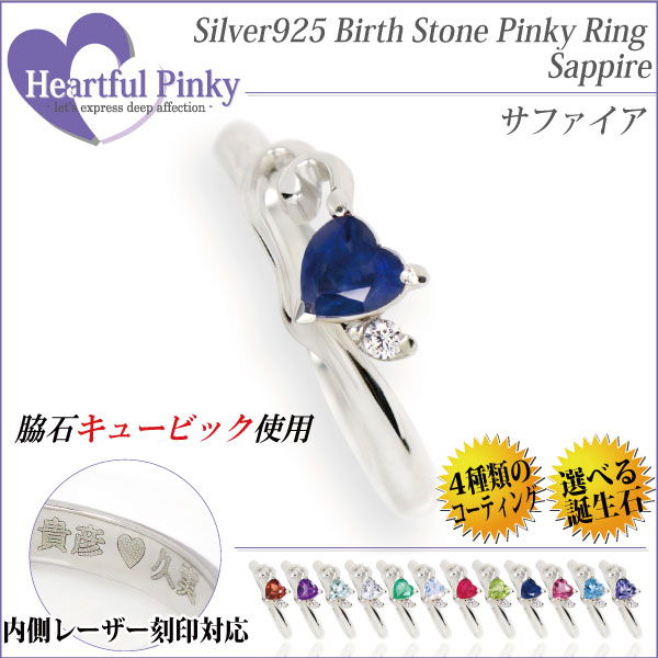 天然サファイヤ&ホワイトキュービックジルコニアスリーストーンリング サファイア 天然石 9月誕生石 スリーストーン ピンキーリング