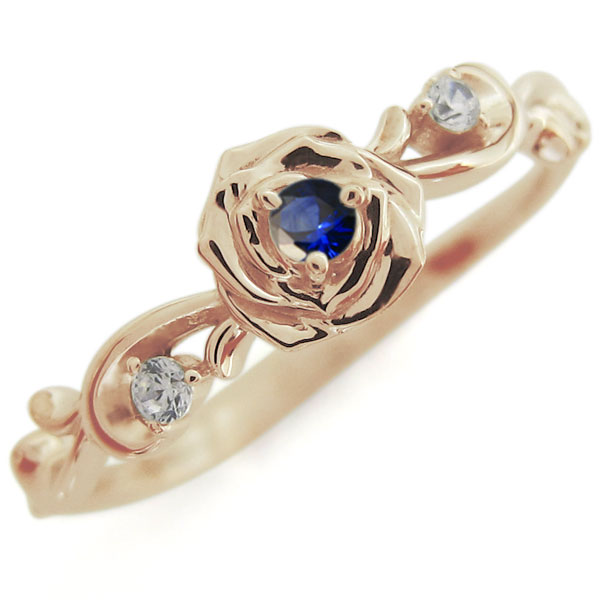 フラワーモチーフ サファイア リング 薔薇 10金 指輪