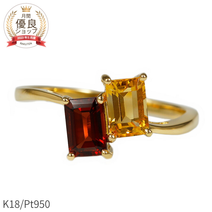 ガーネット×シトリンリング ガーネットリング シトリンリング 18金 K18 k18 Pt950 1月誕生石 11月誕生石 赤 オレンジ 黄水晶 天然ガーネット 天然シトリン...