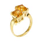 約4ct天然シトリンリング 11号 K18YG バケットカット 長方形 スクエア 四角形 2粒 2P 黄水晶 イエローゴールド 地金約4.4g 中古 送料無料