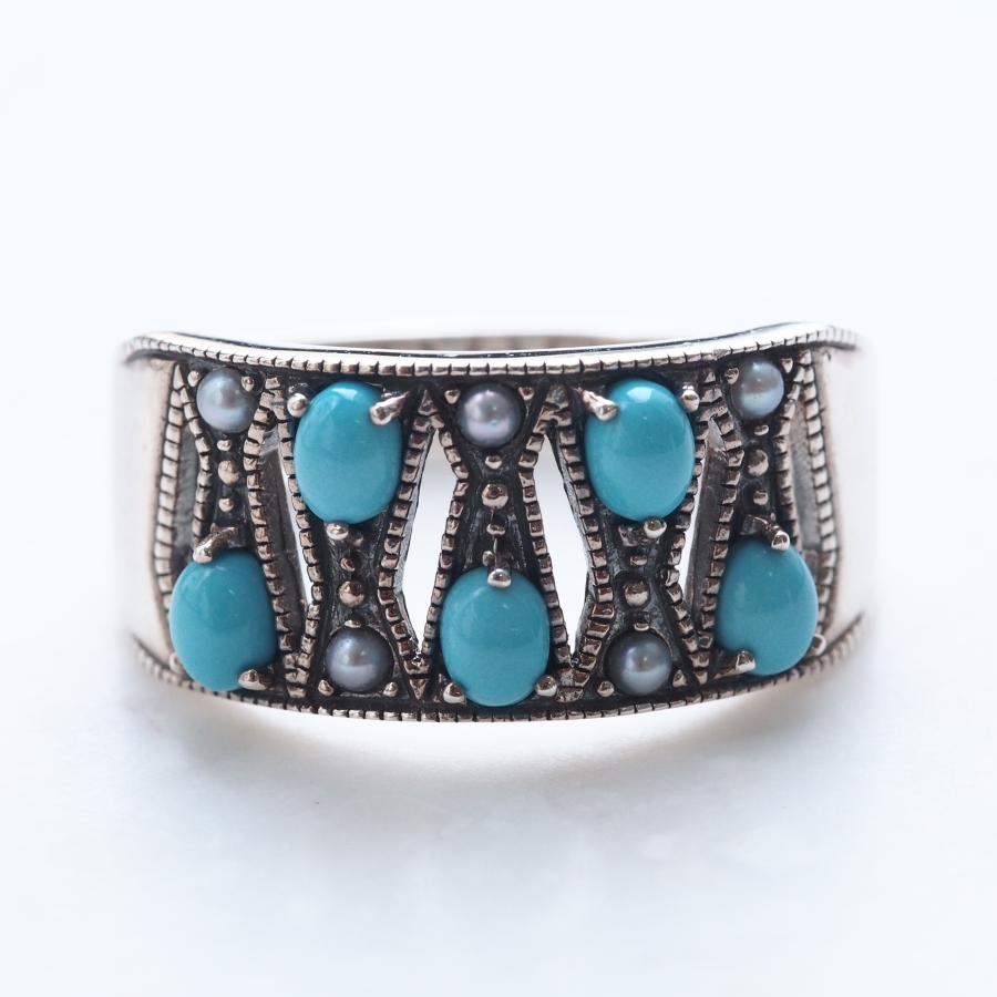 碌山 ターコイズ シードパール リング シックで華やかなアンティークデザインに冴える青 RP 204R0351-TQ