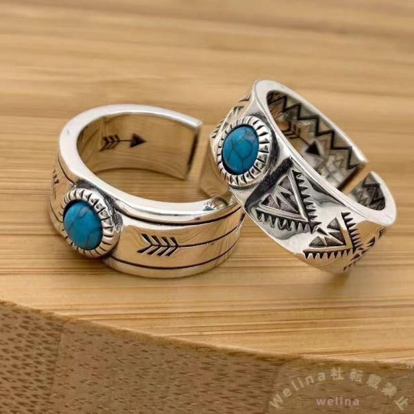 ◆サイズリングの幅:約8mm、重さ:約7g◆材質・シルバー925・ターコイズ◆商品説明インディアン調の模様に三角形にカットされた天然ターコイズを装飾したリングです。...