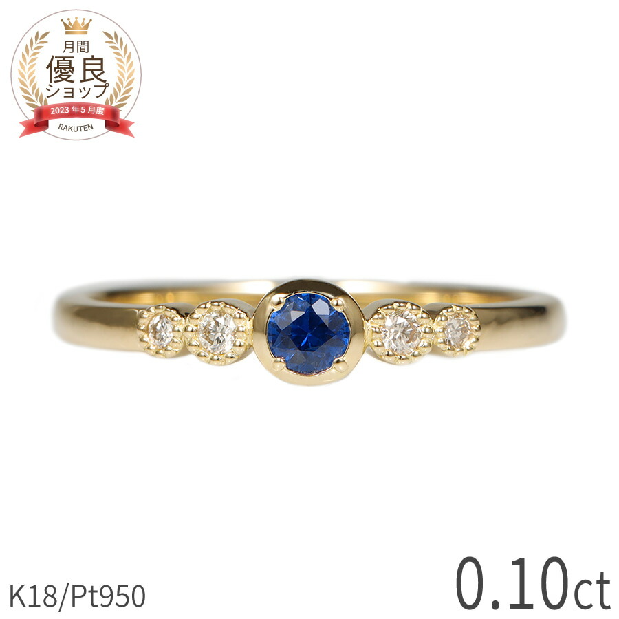 サファイア ダイヤモンド リング 0.1カラット 18金 イエローゴールド プラチナ950 k18 ピンクゴールド 18k フクリン 風 一文字リング ラ