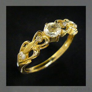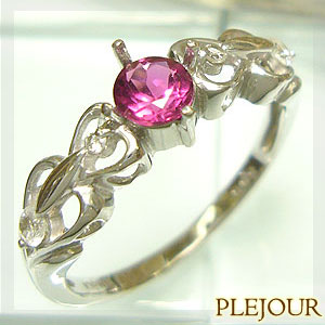 9月誕生石ピンクサファイアを使用した10金製の唐草(アラベスク) & ハートモチーフリング(指輪)です。しなやかで繊細な唐草模様が、美しく優しい女性をイメージさせるリングです。※【10金カラー3色の中...