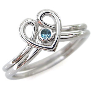 アクアマリンサンタマリア・リング・プラチナ・ハート・リング・指輪