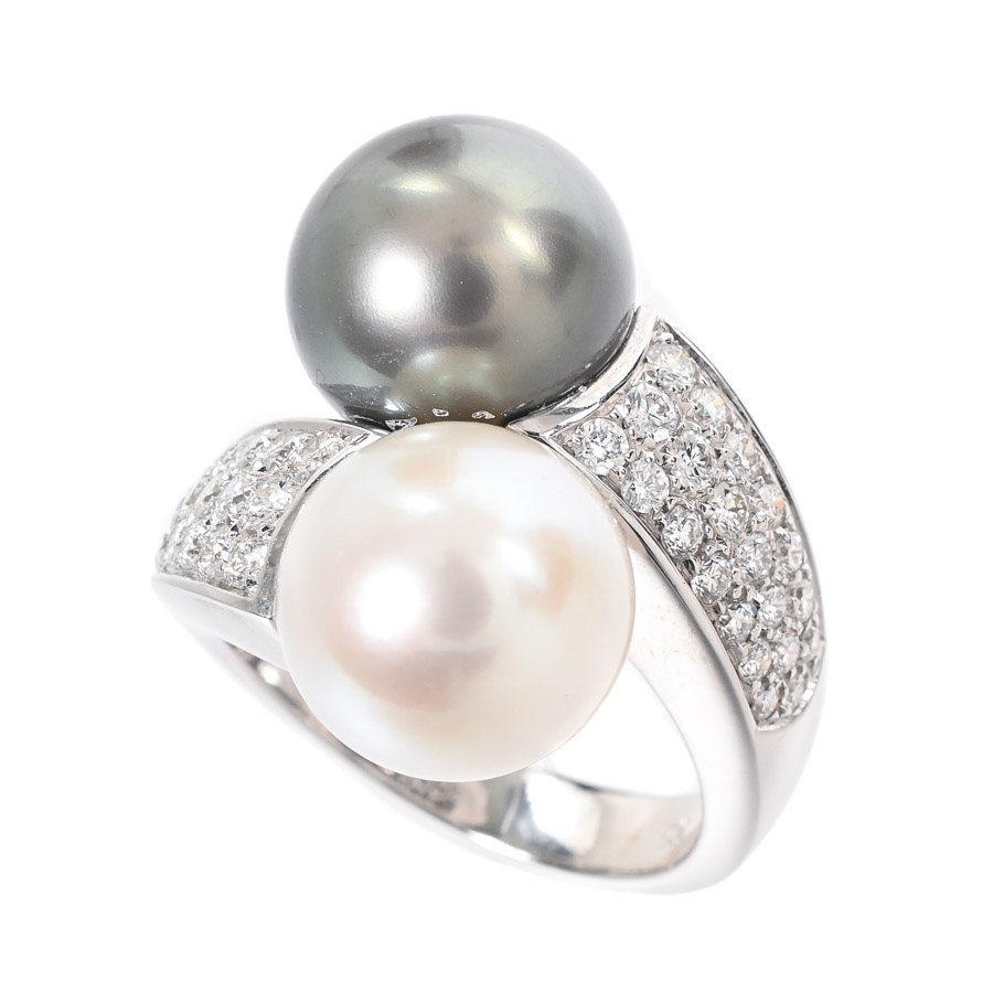 パール デザインリング プラチナ メレダイヤ 指輪 真珠 リング 12.5号 Pt900 パール ダイヤモンド レディース 中古