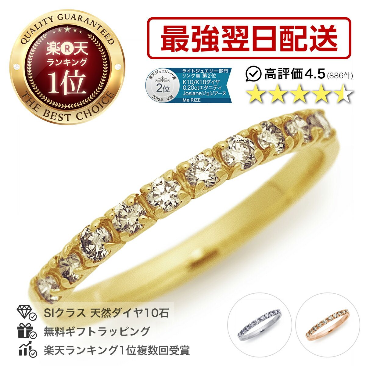 エタニティリング 18金 ダイヤモンド エタニティ リング 18金 リング レディース 指輪 シンプル 10石 0.10ct K18 ピンキーリング 1号 ピンクゴールド イエローゴールド ホワイトゴー...