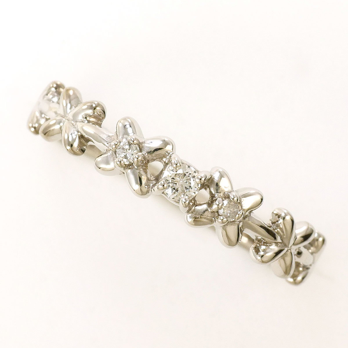 K18 18金 WG ホワイトゴールド リング・指輪 10.5号 ピンクダイヤ 0.05ct 総重量約1.6g 中古ジュエリー