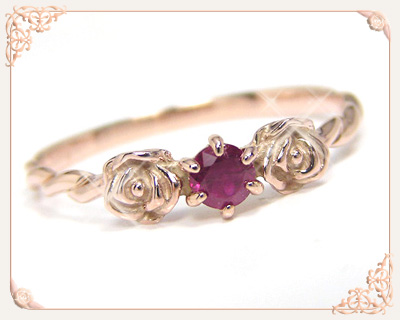 ハート・リング・ルビー・リング・唐草・華奢・リング・10金・指輪