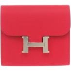 未使用品 エルメス コンスタンス コンパクト ヴォーエプソン レッド □O刻印 赤 二つ折り財布 0931 HERMES