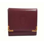 美品 カルティエ Cartier マスト ライン がま口 コインケース 小銭入れ ボルドー レザー ロゴ 財布 コンパクト ウォレット【中古】 bs4222