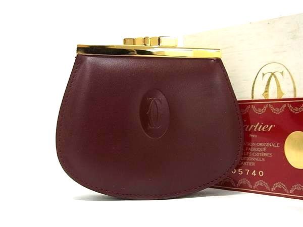カルティエ コインケース ワインレッド ボルドー レザー レディース CARTIER 【中古】