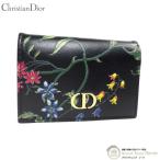 クリスチャンディオール (Christian Dior) CARO Glycine ミニ ウォレット フラワー 刺繍 二つ折り 財布 ブラック(未使用品)中古