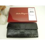 サルヴァトーレフェラガモ ロングウォレット ガンチーニ レザー黒 2折長財布 未使用@AQ220769