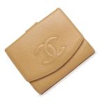 (中古)シャネル CHANEL Wホック 二つ折り財布 キャビアスキン レザー ベージュ ゴールド金具 A13496