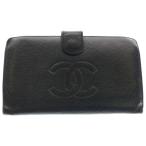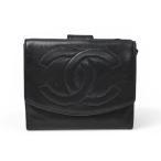 CHANEL シャネル 財布 ココマーク ブラック ラムスキン レディース Wホック 二つ折り財布【本物保証】