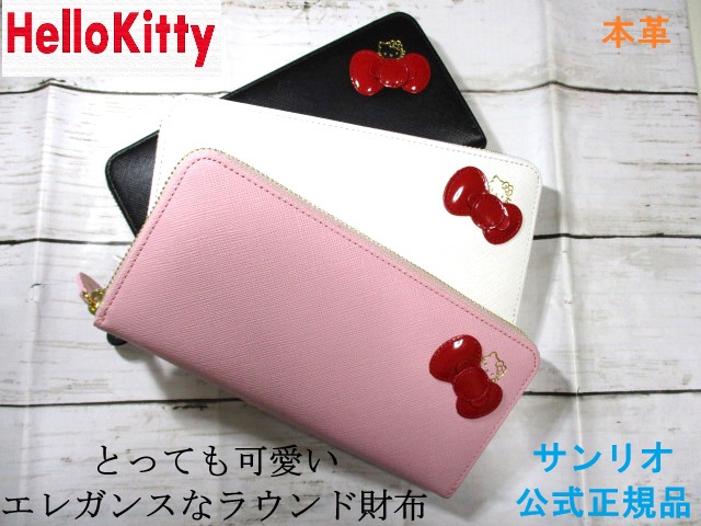 HELLO KITTY キティちゃん 送料無料 12160 87065 本革 大人可愛い ラウンド 長財布 コイン入れ ウォレット レディース レザー 鞄 就職活動 通勤 カジュアル サイフ 牛革 財...