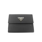新品同様/ PRADA プラダ 2M0738 サフィアーノマルティックレザー 二つ折り財布(小銭入れあり) ブラック メンズ