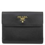 プラダ 二つ折り財布 サフィアーノ Wホック コンパクト ウォレット レザー ブラック NERO 黒 メタルロゴ ダブルホック 1M0523