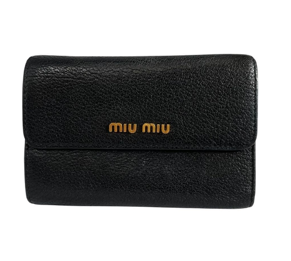 極美 ミュウミュウ 三つ折り財布 マドラス ロゴ金具 マルチカラー ブラック