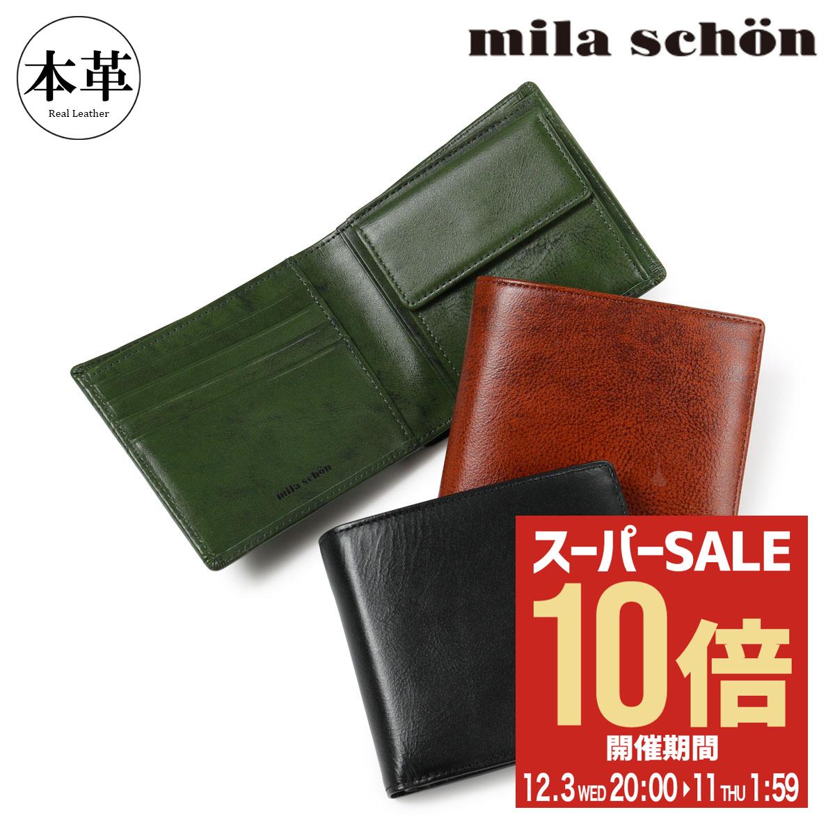 ミラショーン 二つ折り財布 本革 シャドウスムース メンズ MSMW2AS2 mila schon 牛革 レザー