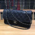 送料無料 シャネル フレンチ リビエラ ダブル チェーン ショルダー バッグ ブラック ソフト キャビアスキン A66801 マトラッセ CHANEL