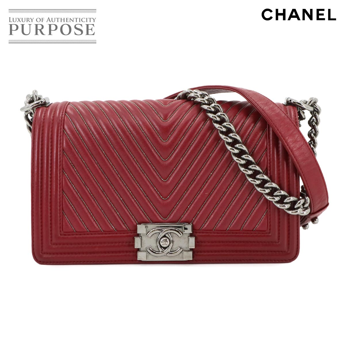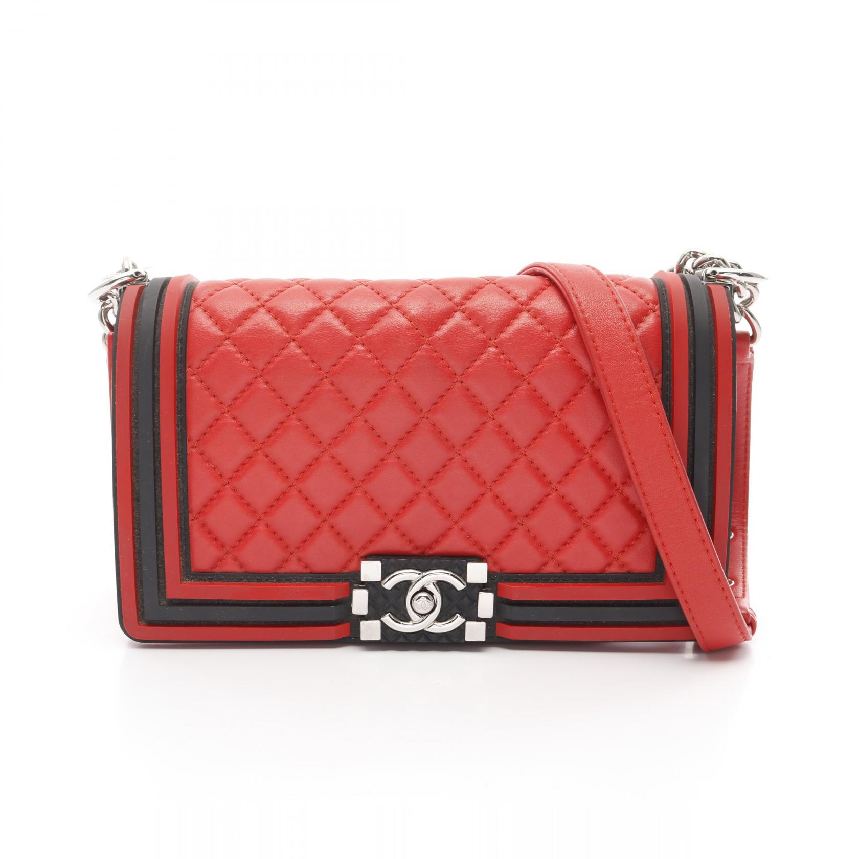 CHANEL◆A67086/ボーイシャネル/チェーンショルダー/カーフスキン/ショルダーバッグ/レザー/RED