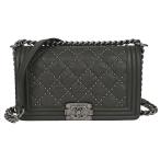 シャネル CHANEL スタッズ ボーイシャネル 25 チェーンショルダーバッグ 肩掛け レディース レザー アンティークシルバー金具 グレー A67086