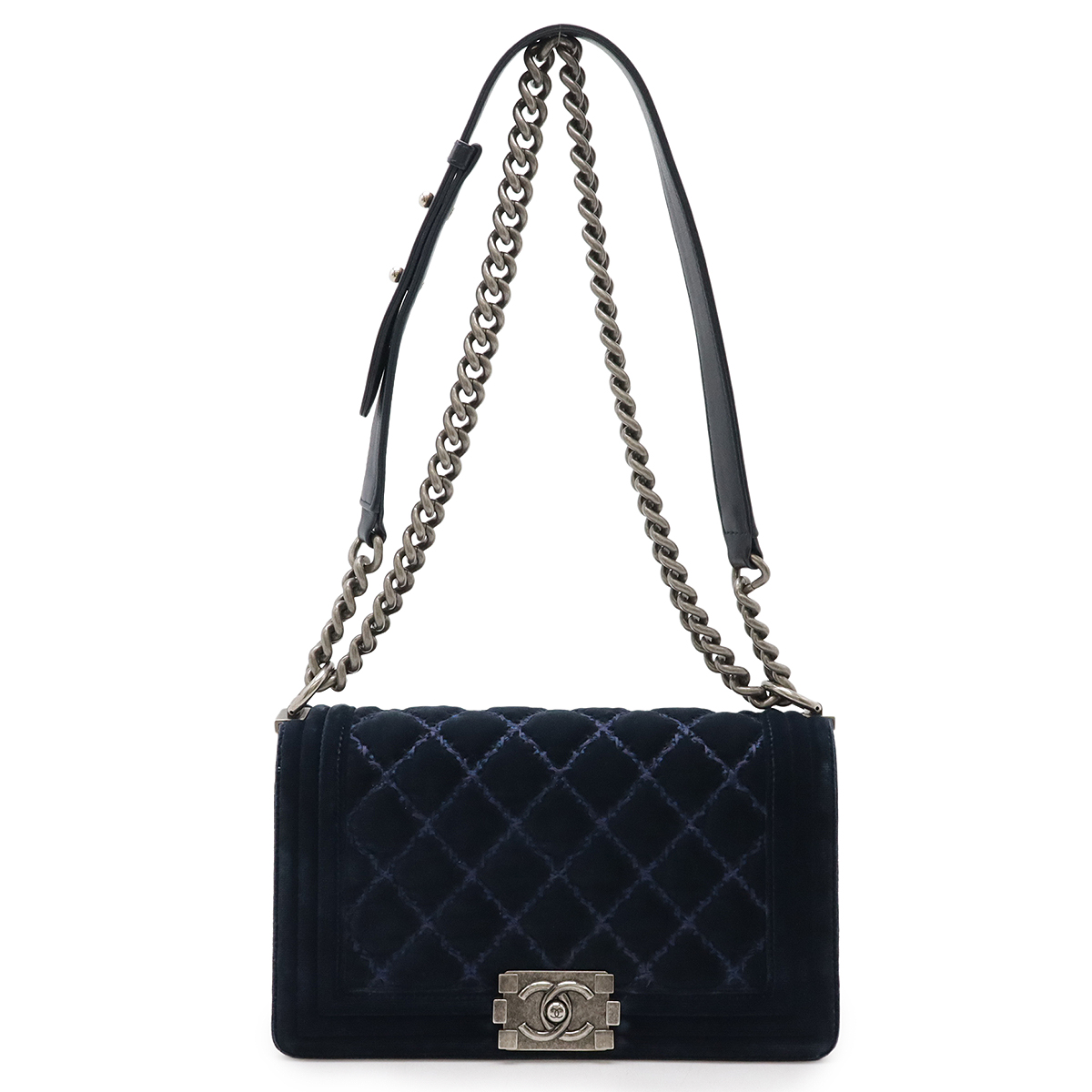 シャネル ボーイシャネルチェーンショルダー ショルダーバッグ A67086 ネイビー レディース 中古AB品