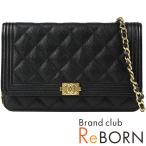 美品 CHANEL シャネル BOY CHANEL ボーイシャネル マトラッセ チェーンウォレット グレインド カーフスキン キャビアスキン ブラック×ゴールド金具 A80287