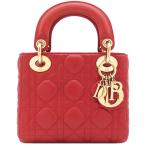 クリスチャン・ディオール 2WAYバッグ レディディオール ミニ ラムスキン レッド 赤 ショルダー カナージュ CAL44500 中古