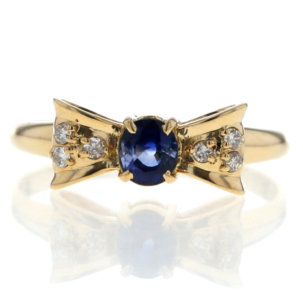 K18YG イエローゴールド リング サファイア 0.35ct ダイヤモンド 0.07ct ラウンド リボン キュート 指輪 11.5号 【新品仕上済】【zz】【