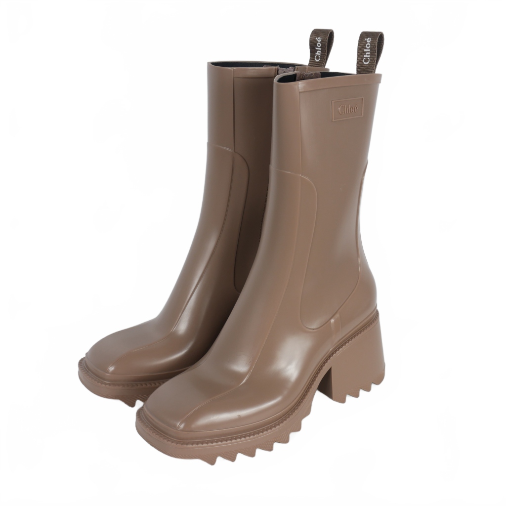 【中古】クロエ CHLOE Betty ベティ レインブーツ ラバー サイドジップブーツ 38 ダークグレージュ レディース
