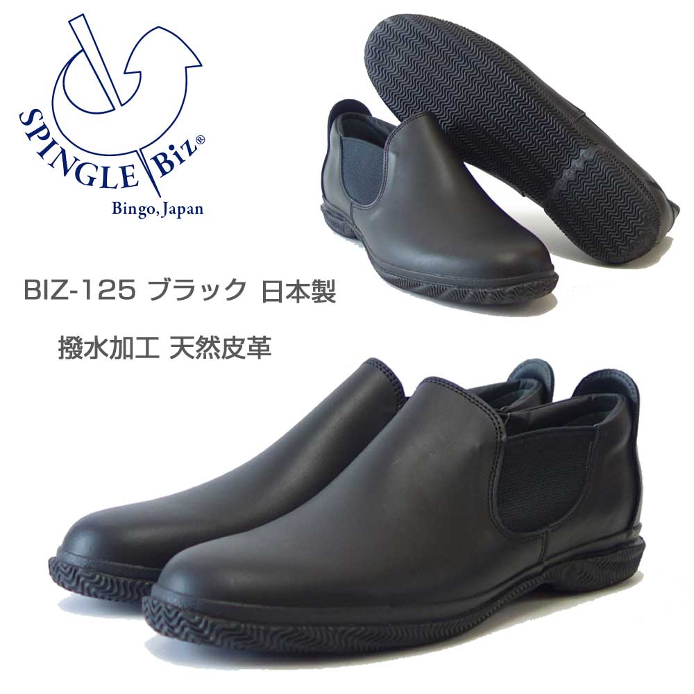 スピングル ビズ SPINGLE SP-6125(メンズ)ブラック (05) 天然皮革 スニーカー ラバーソール 超撥水レザー アンクルブーツ「靴」