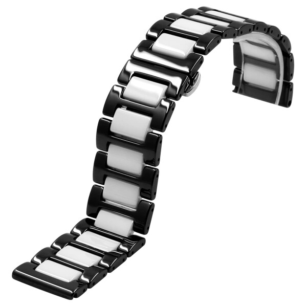時計 ベルト フルセラミック時計バンド 20mm クイックリリース 女性男性用時計ストラップ ステンレス鋼の蝶のバックル ブラックホ ワイト
