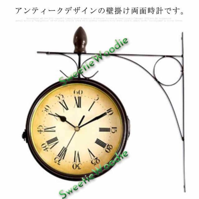 壁掛け時計 アンティーク レトロ調 両面用 時計 壁掛け 丸型 ウォールクロック クラシック インテリア お洒落 雑貨 リビング 玄関 静音