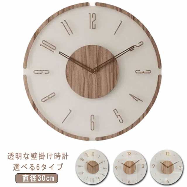 透明 壁掛け時計 木製 ウッド クリア 掛け時計 静音 壁掛け 時計 音がしない おしゃれ 時計 クロック 贈り物 シンプル ナチュラル インテ