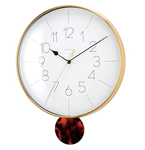 ※他店舗と在庫併用の為、品切れの場合は、ご容赦ください。【商品の概要】べっ甲調の振り子が左右に揺れる、洗練されたデザインのウォールクロックです。丸みを帯びたガラスカバーを、落ち着いた輝きのゴールドフレ...