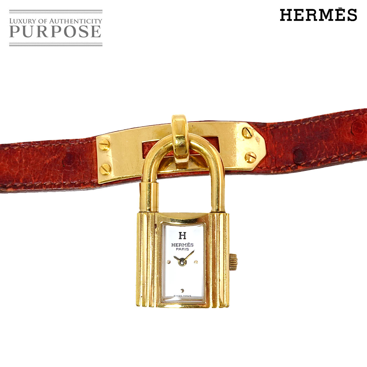 エルメス ケリーウォッチ ヴィンテージ レディース 腕時計 オーストリッチ レッド ホワイト クォーツ カデナ 90266694 【中古】時計