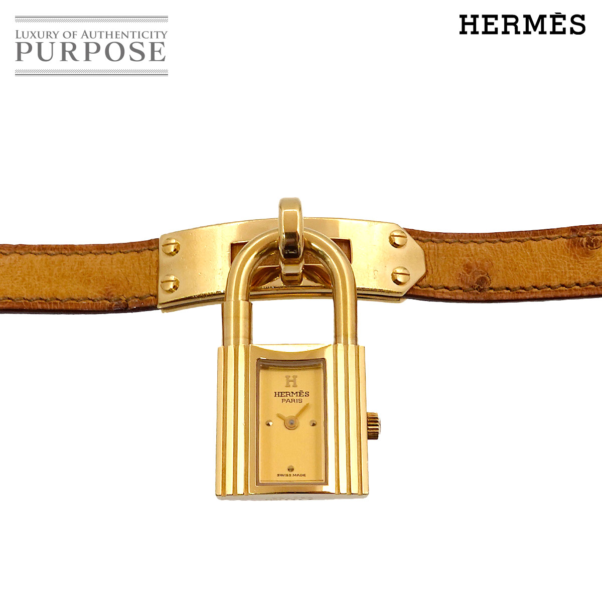 エルメス ケリーウォッチ ヴィンテージ レディース 腕時計 オーストリッチ ゴールド クォーツ カデナ 90272291 【中古】時計