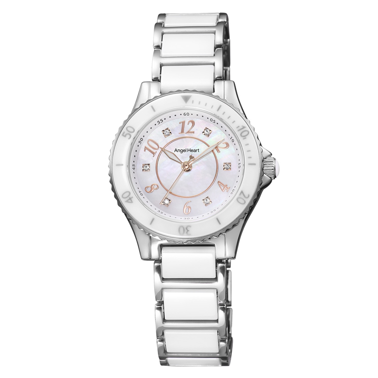 アクセサリー感覚で着用できる、華やかさが特徴のエンジェルハートシリーズ。丸みを帯びた数字とクリスタルガラスが女性らしさを引き立てます。リューズのトップにあしらったクリスタルガラスもポイント。また、傷が...