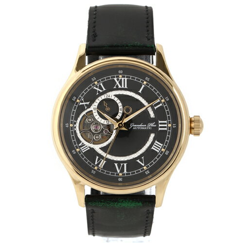 安心の日本製 クロノグラフ 腕時計 最高級イタリアンレザーベルト 紳士用GRANDEUR PLUS グランドール プラス 腕時計 黒文字盤 黒ベルト